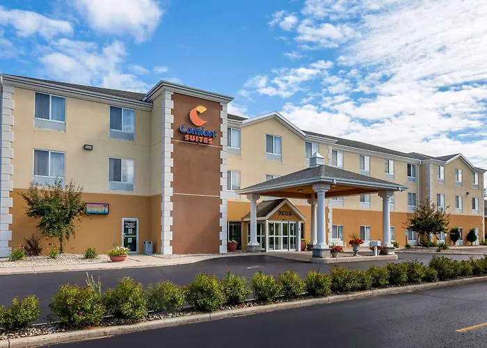 Comfort Suites Escanaba West features spacious guest rooms with essential amenities and is a 2-star hotel rated 8.8/10 on Booking.com. Guests enjoy an indoor heated pool, a fitness center, and a free hot breakfast to start their day. The hotel is positioned near the coast of Little Bay de Noc, providing access to local activities such as swimming and boating.