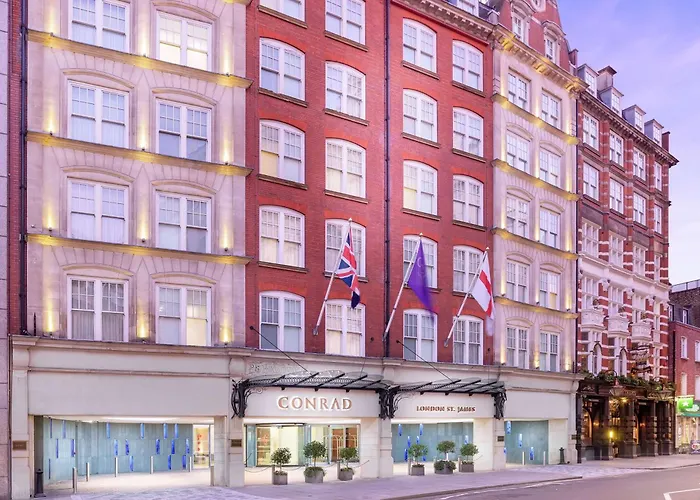 Conrad London St James, a 5-star London hotel with a 9.0/10 rating on Booking.com, features contemporary British cuisine and an elegant art collection. This midcentury-inspired hotel offers thoughtful amenities, including 256 spacious rooms and suites.