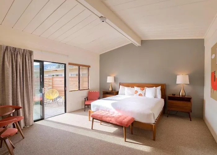 Rooms at Contenta Inn include stylish mid-century modern art and furnishings. Each room features a private bathroom, refrigerator, coffee machine, and free Wi-Fi. Selected accommodations offer private patios that open onto a citrus courtyard, enhancing guests' experience.