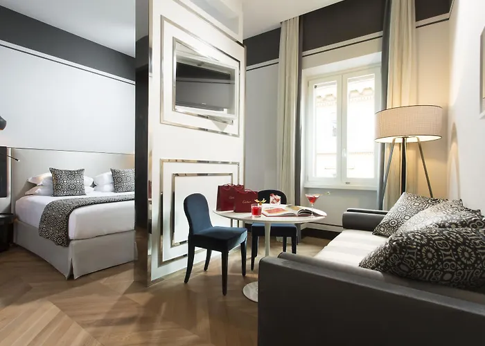 The hotel is well-served by public transportation options such as Spagna Station and Barberini Metro Station, both about a 14-minute walk away. Notable landmarks within walking distance include the Roman Forum (0.3 miles), Colosseum (0.6 miles), and St. Peter's Basilica (1.2 miles).
