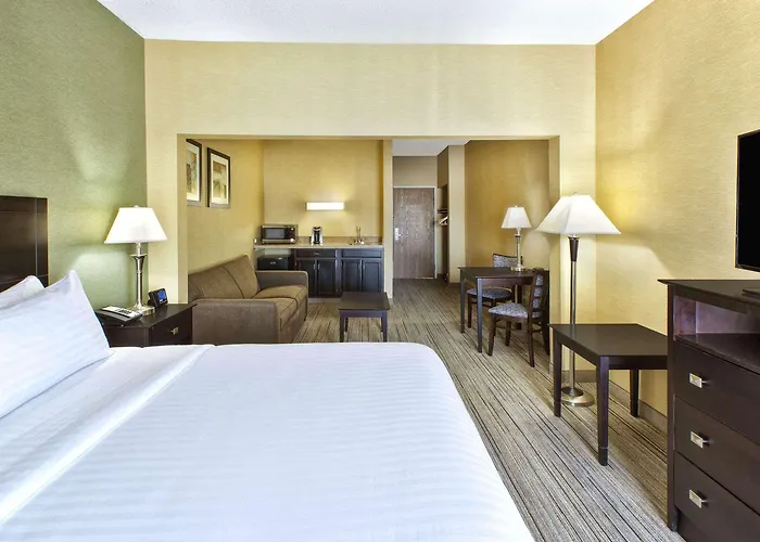 Guests can dig into a free Express Start Breakfast every morning, which includes cheese omelets, bacon, sausages, fresh fruit, and soft bagels. Nearby dining options include Sophia's House of Pancakes (0.5 miles) and El Rodeo (0.5 miles).