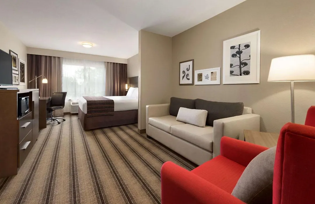 Rooms at Country Inn & Suites include a flat-screen TV, microwave, and refrigerator. Standard options feature free Wi-Fi and a spacious work desk, while suites have a living area and sleeper sofa for extra flexibility. The hotel also has a room designed for guests requiring handicap accessibility.
