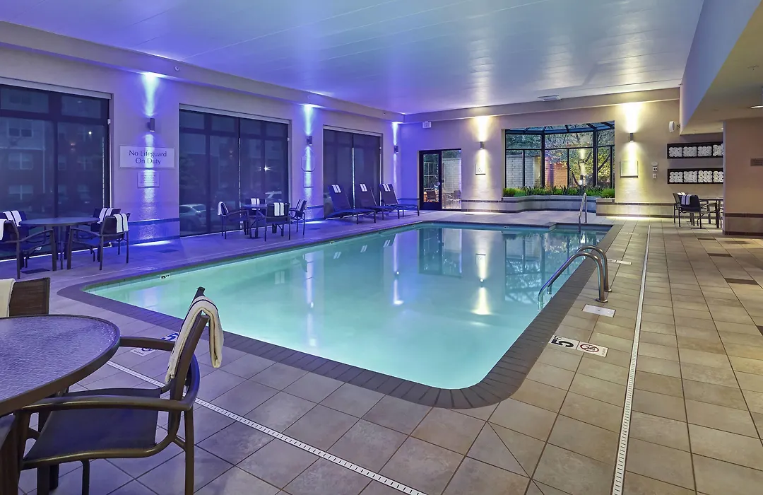 Leisure facilities feature an indoor pool and a 24-hour fitness center equipped with cardio machines and a Peloton Bike. The outdoor patio provides a space for relaxation. For those interested in local attractions, Minnesota Valley National Wildlife Refuge and Hyland Ski and Snowboard Area are nearby.