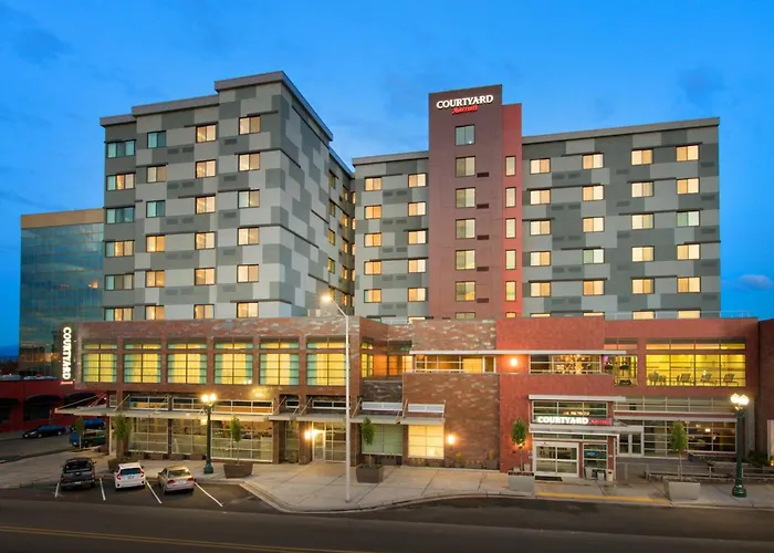 Courtyard By Marriott Seattle Everett Downtown is conveniently located two blocks from Angel of the Winds Arena and Edward D Hansen Conference Center, allowing guests to walk to their events. Nearby transport options include bus stations at Wall St & Colby Ave, just a two-minute walk away, providing easy access to the greater Everett area.