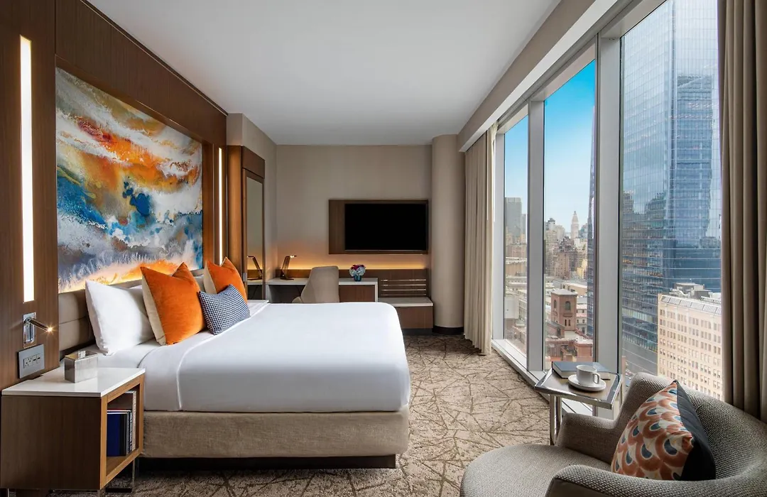 Rooms at Courtyard New York Manhattan/Midtown West feature air conditioning, a desk, a safety deposit box, a flat-screen TV, and a private bathroom with a shower and complimentary toiletries. The hotel offers a range of accommodation options, including rooms with city views and amenities like plush bedding and iPod docks.