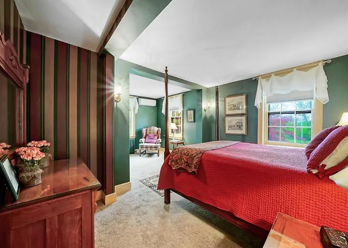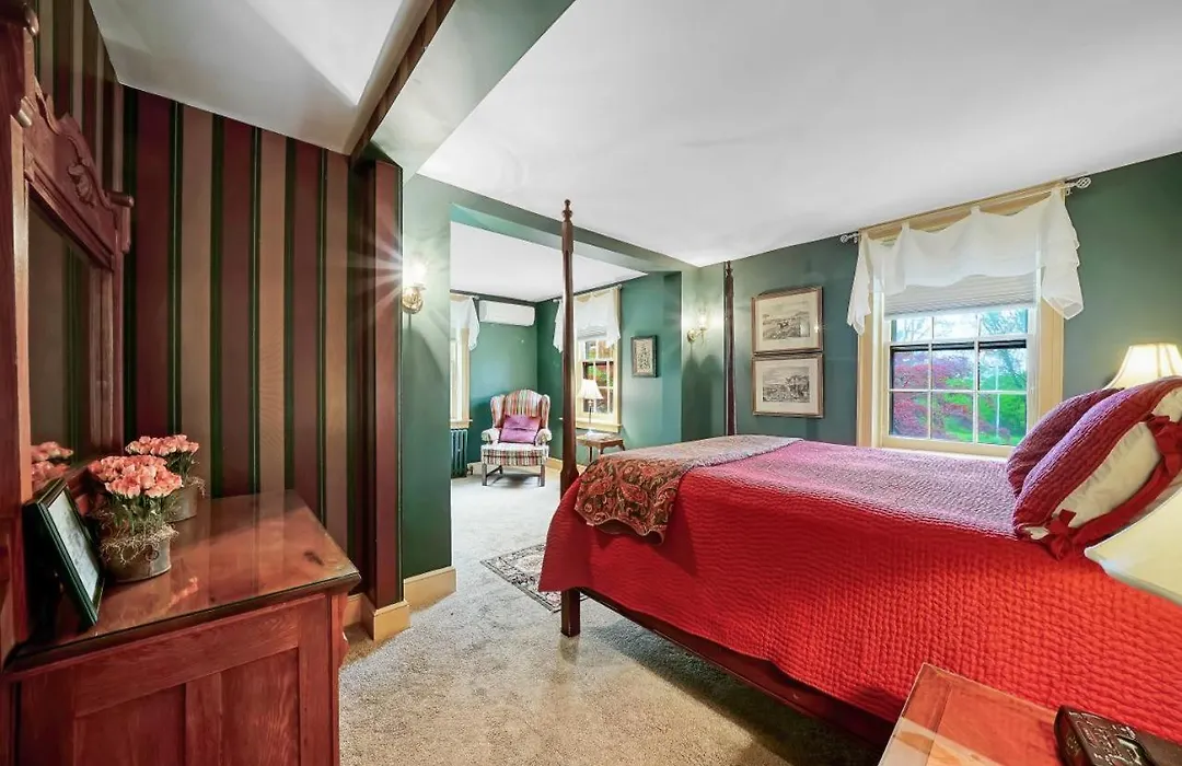 Rooms at Cromwell Manor Inn incorporate period antiques and fine furnishings, featuring amenities like flat-screen TVs and free toiletries. Options include accommodations with queen beds and separate sitting areas, creating a cozy environment for relaxation.