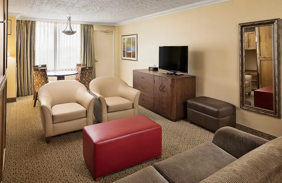 Guest rooms at Crowne Plaza Louisville Airport Expo Ctr are equipped with flat-screen televisions, free high-speed Internet access, and generous work desks for convenience. Guests can opt for spacious one or two-bedroom suites for added comfort.