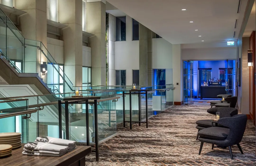 Delta Hotels By Marriott Vancouver Downtown Suites features a fully equipped 24-hour fitness center to maintain exercise routines. The hotel also offers meeting spaces with integrated AV technology for events, ensuring a productive environment. A concierge service is available to assist guests with local recommendations.