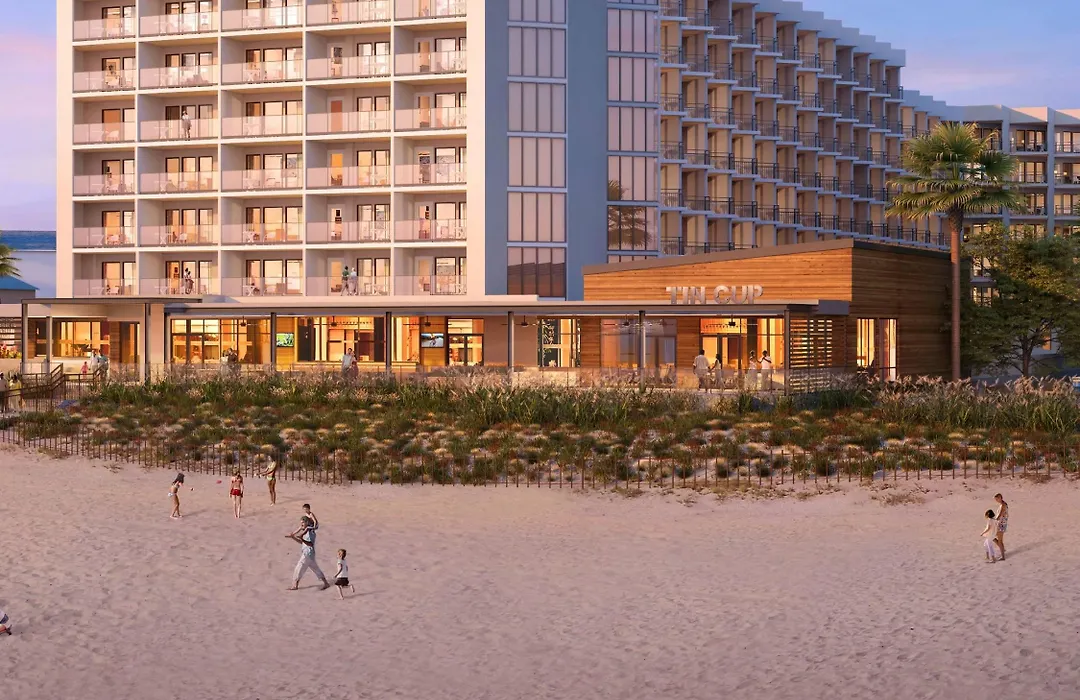 Dining options include Tides Coastal Kitchen, offering fresh oysters and coastal cuisine with inspiring water views. Additional on-site options include SandBar Market for Starbucks coffee and fresh pastries.