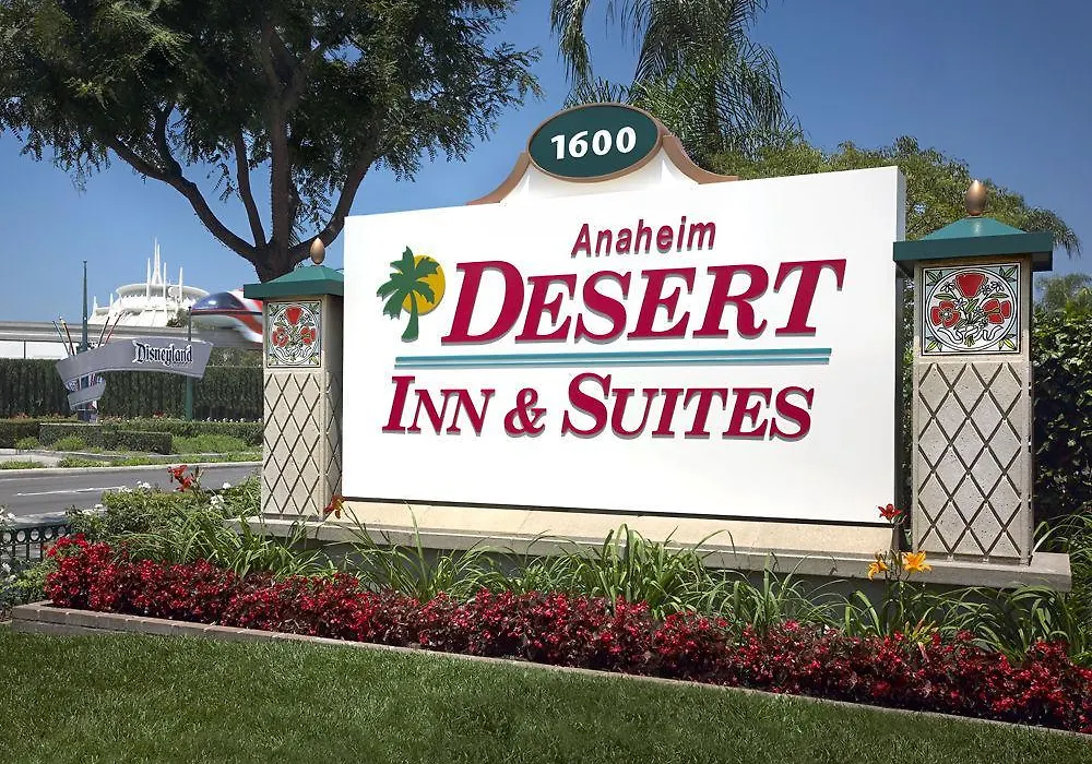 Anaheim Desert Inn & Suites, a 3-star hotel rated 8.2/10 on Booking.com, offers affordable accommodations with convenient amenities near Disneyland(R). Notable features include complimentary breakfast, an indoor heated pool, and a rooftop viewing deck for Disneyland(R) fireworks.