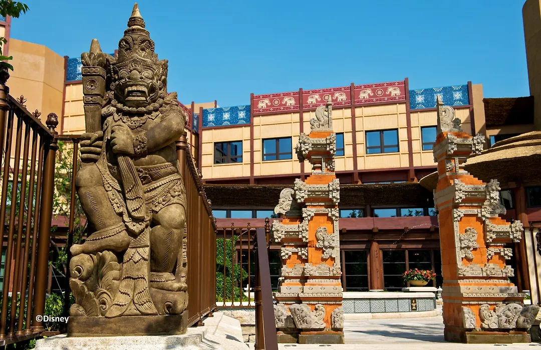 Dining at Disney Explorers Lodge features three restaurants offering a variety of international cuisines, including American and Asian favorites. Unique dishes such as wok-fried guinea fowl and grilled garoupa fillet are available. In-room dining is also available for guests seeking convenience.