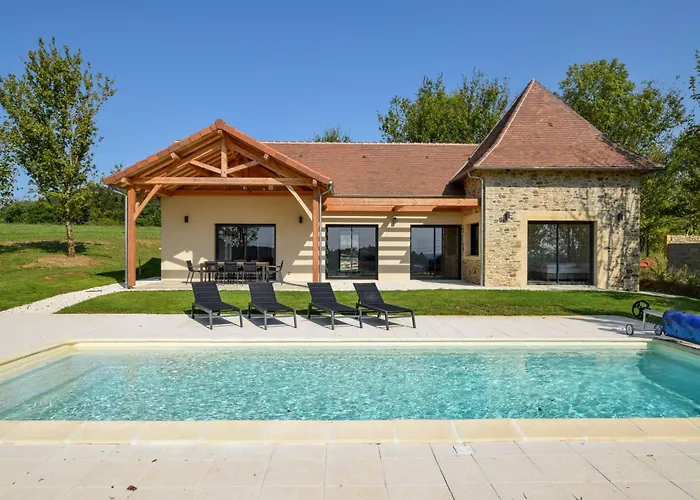 Rooms and holiday homes at Domaine d'Essendieras offer various accommodations suitable for families and groups, with options for up to 12 guests. Each unit includes modern amenities and some feature private heated pools, fireplaces, and spacious living areas. Guests are welcomed with authentic Périgourdine decor and charming views.