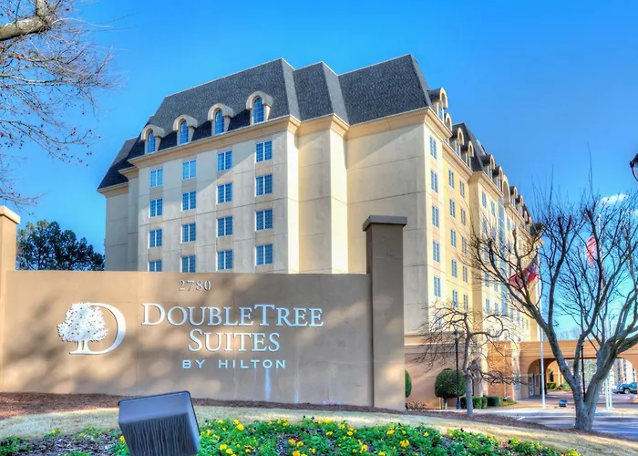 Doubletree Suites By Hilton At The Battery Atlanta, a 3-star Smyrna hotel with an 8.6/10 rating, features 154 spacious two-room suites perfect for business travelers and families. Amenities include an outdoor pool, fitness center, and an on-site restaurant offering an all-American cuisine menu.