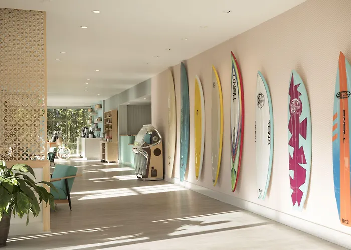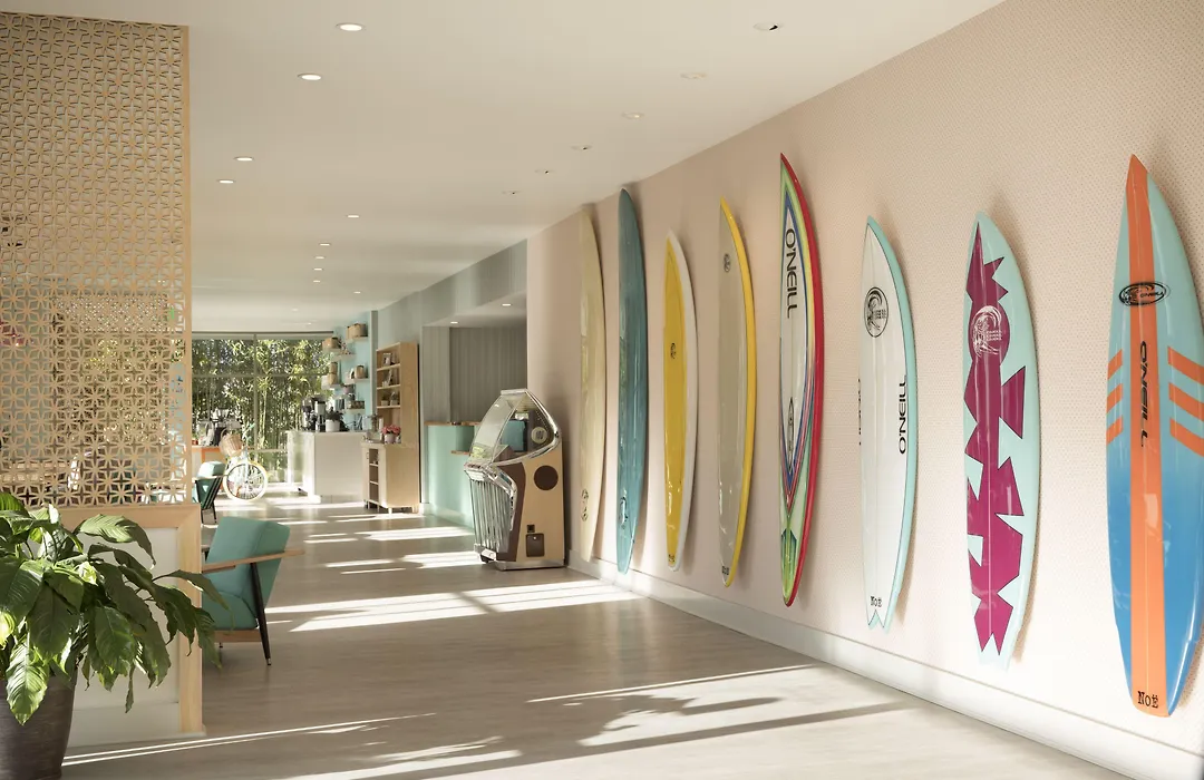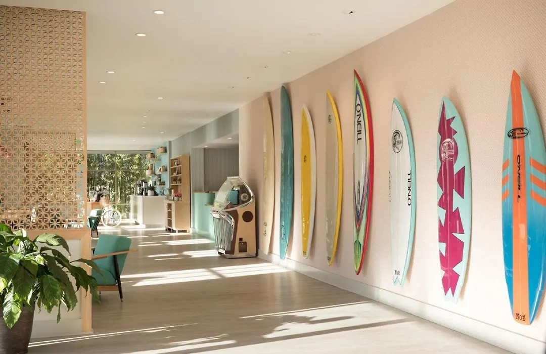 The hotel features an outdoor heated swimming pool with fire pits and cabanas for relaxation. Nearby activities include surfing at famous Steamer Lane and exploring the Santa Cruz Wharf for whale watching. Guests can enjoy access to rental bikes for leisurely rides along scenic routes.