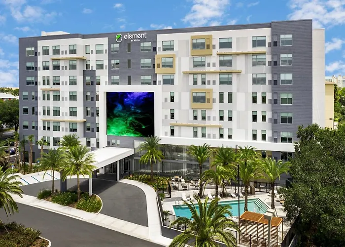 Element Orlando Universal Blvd. is a 3-star pet-friendly hotel in Williamsburg, featuring a saline outdoor pool and a 24-hour fitness center with Peloton bikes. Guests can benefit from complimentary breakfast and a Relax evening reception offering local beverages.