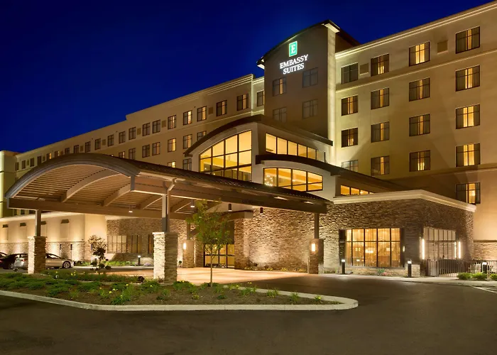 Embassy Suites By Hilton Akron Canton Airport is a 4-star North Canton hotel offering two-room suites with amenities suited for business and leisure travelers. Guests benefit from complimentary WiFi, a fitness center, and an on-site restaurant serving American cuisine.