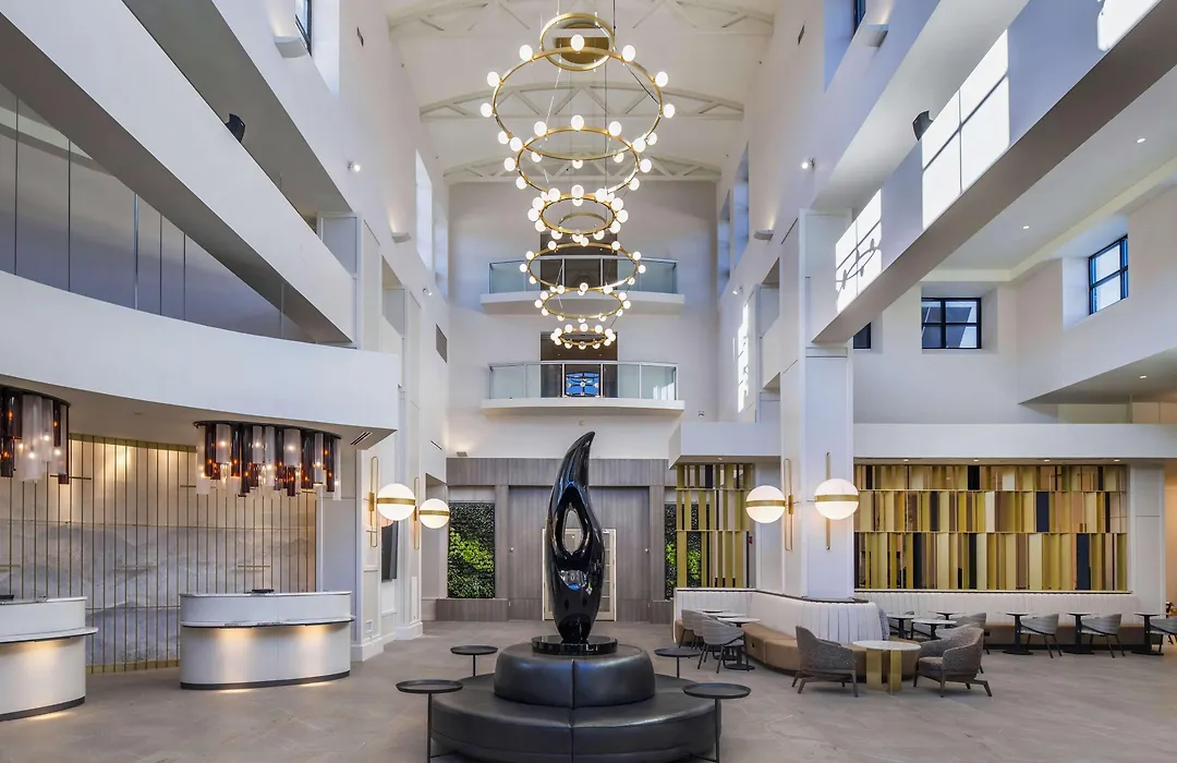 Leisure amenities consist of an indoor pool and fitness center. The property is also equipped for meetings and events, with the Flight Ballroom accommodating up to 300 guests and an outdoor patio available for gatherings.