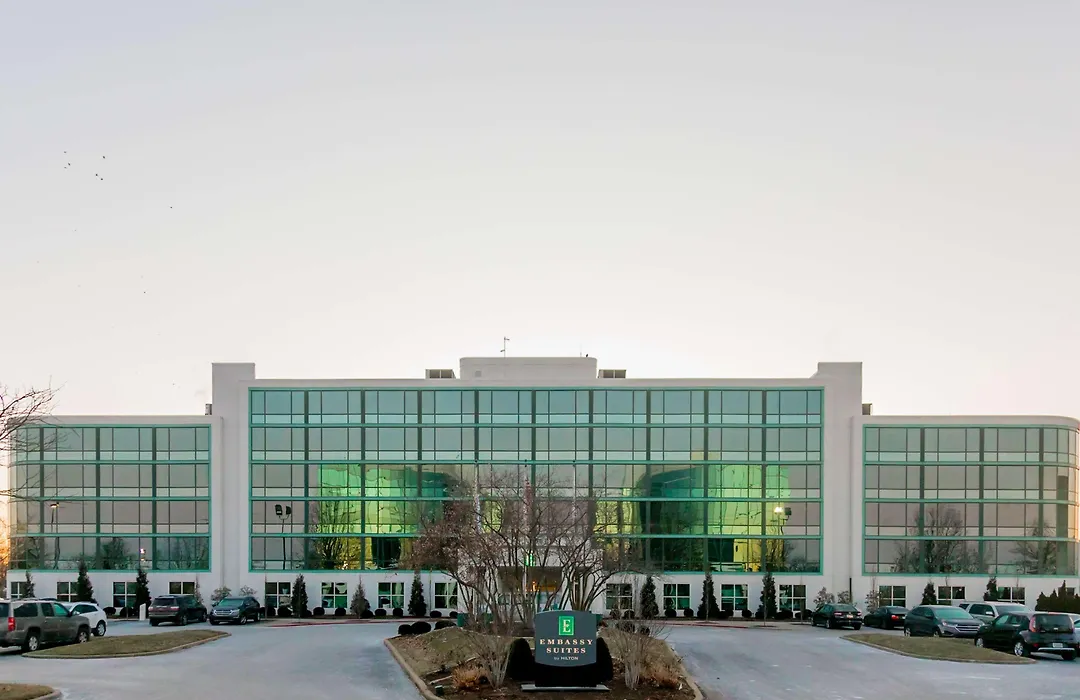 The Embassy Suites By Hilton Lexington Green features 174 renovated rooms with separate living and bedroom areas, including a wet bar, refrigerator, and 55-inch HDTV. Each suite provides premium bedding, air conditioning, and laptop-friendly workspaces for a productive stay.
