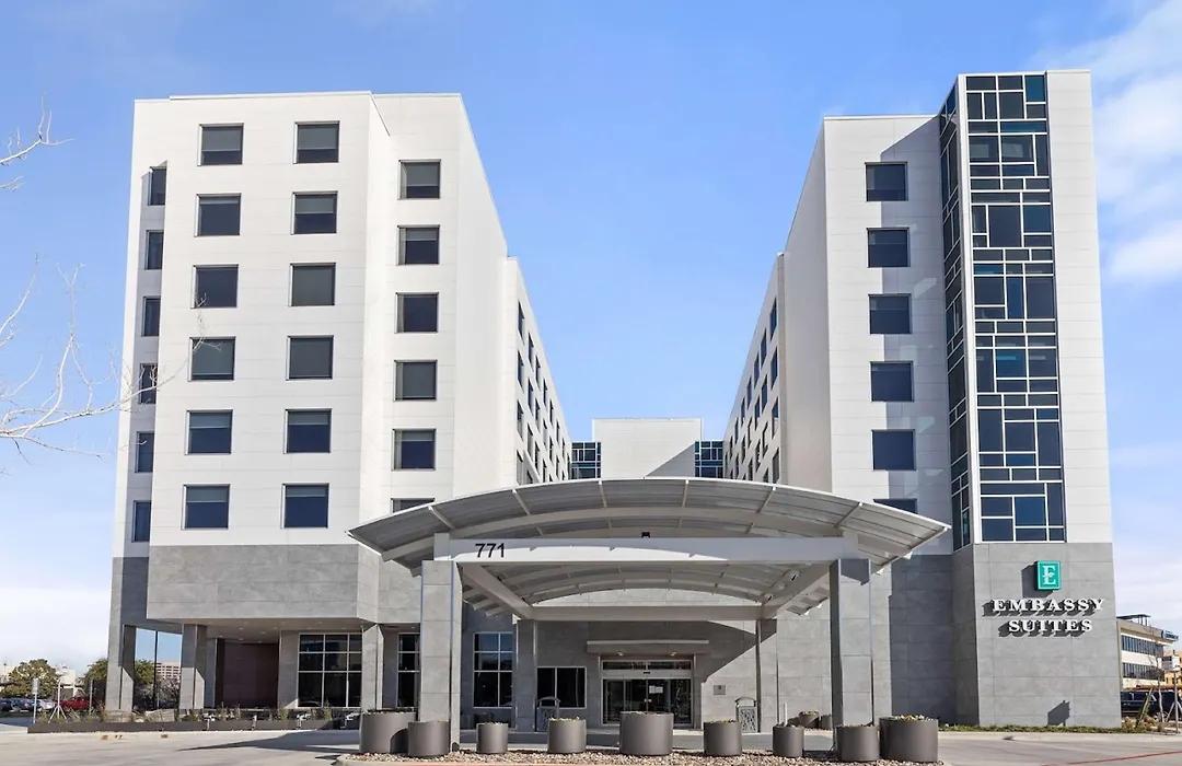 Embassy Suites By Hilton Irving Las Colinas, a 4-star hotel with a 9.2/10 rating on Booking.com, offers spacious suites and free Wi-Fi. Amenities include a fitness center, outdoor pool, and complimentary made-to-order breakfast.