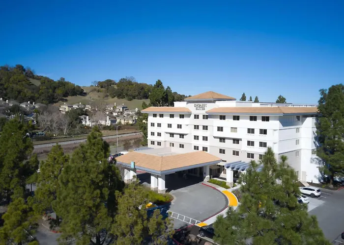 Embassy Suites offers a total of 13000 square feet of versatile meeting space for events, complemented by catering services and A/V equipment. The hotel is conveniently located with easy access to landmarks such as Dominican University of California and Falkirk Cultural Center.