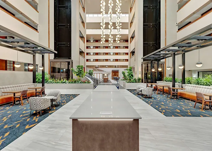 Embassy Suites offers an indoor pool, a 24-hour fitness center, and a complimentary evening reception for guests. The hotel features a business center and over 11000 square feet of flexible event space, making it suitable for both leisure and corporate needs.