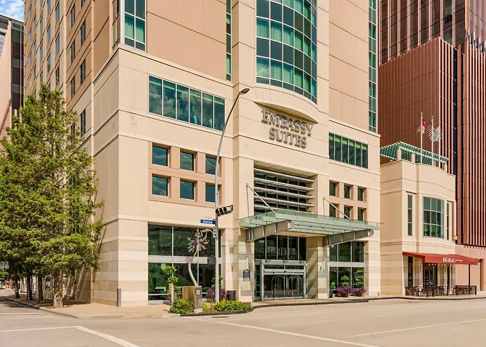 Embassy Suites Houston - Downtown features spacious suites, an outdoor pool, and a complimentary cooked-to-order breakfast. This 4-star hotel provides convenient access to nearby attractions including Minute Maid Park and Discovery Green Park.