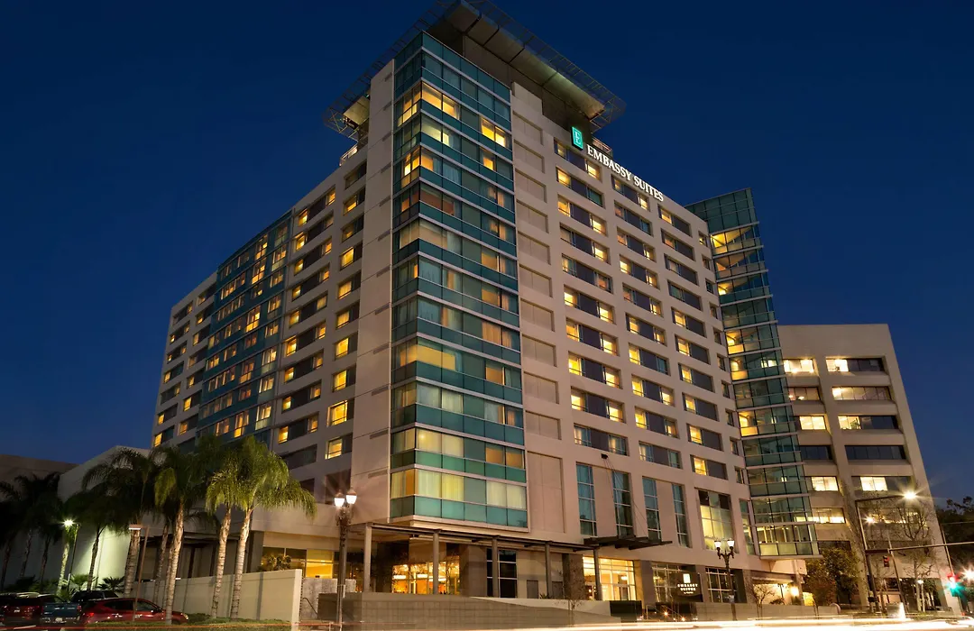 Embassy Suites Los Angeles Glendale, a 4-star hotel, features spacious suites with living rooms and wet bars. Guests can enjoy a cooked-to-order breakfast and evening reception, along with amenities including a fitness center, whirlpool, and business center.