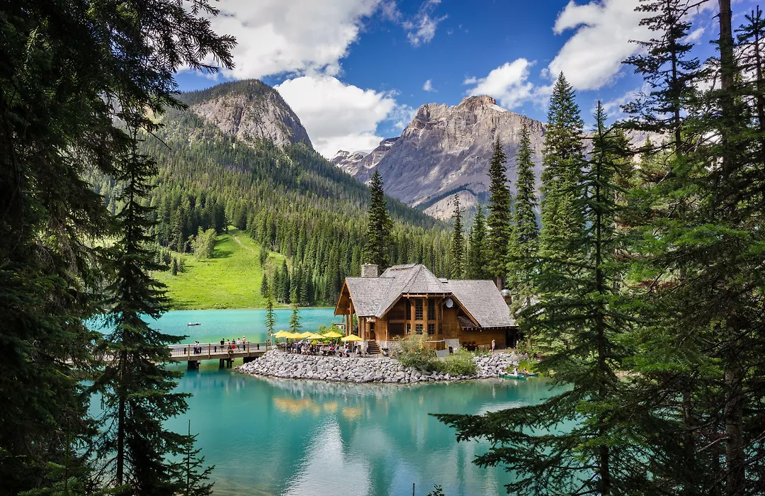 Emerald Lake Lodge, a 4-star Field hotel with an 8.4/10 rating on Booking.com, offers rustic charm on a peninsula surrounded by pristine emerald waters. Guests enjoy award-winning dining, serene accommodations, and nature-centric experiences in Yoho National Park. The lodge features 24 cabin-style buildings and a range of amenities.