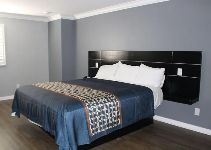 The motel is located approximately 4.3 miles from key attractions including Microsoft Theater and Staples Center. Popular dining options and shopping facilities are accessible within a 5-minute drive, including Grand Central Market and The Broad.