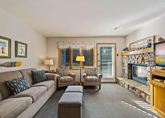 Each unit at Evergreen Hill Condominiums includes a full kitchen and two bathrooms, ideal for families or extended stays. Guests appreciate features like a fieldstone fireplace, whirlpool tub, and walk-out decks leading to the outdoor pool area.