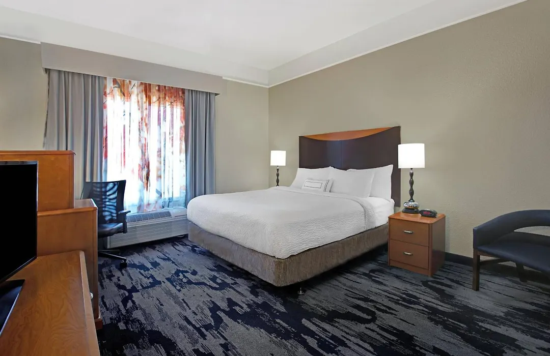 Leisure facilities at the Fairfield Inn include a small gym and outdoor pool with a whirlpool, catering to both relaxation and fitness needs. The hotel also offers a 24-hour business center for corporate guests.