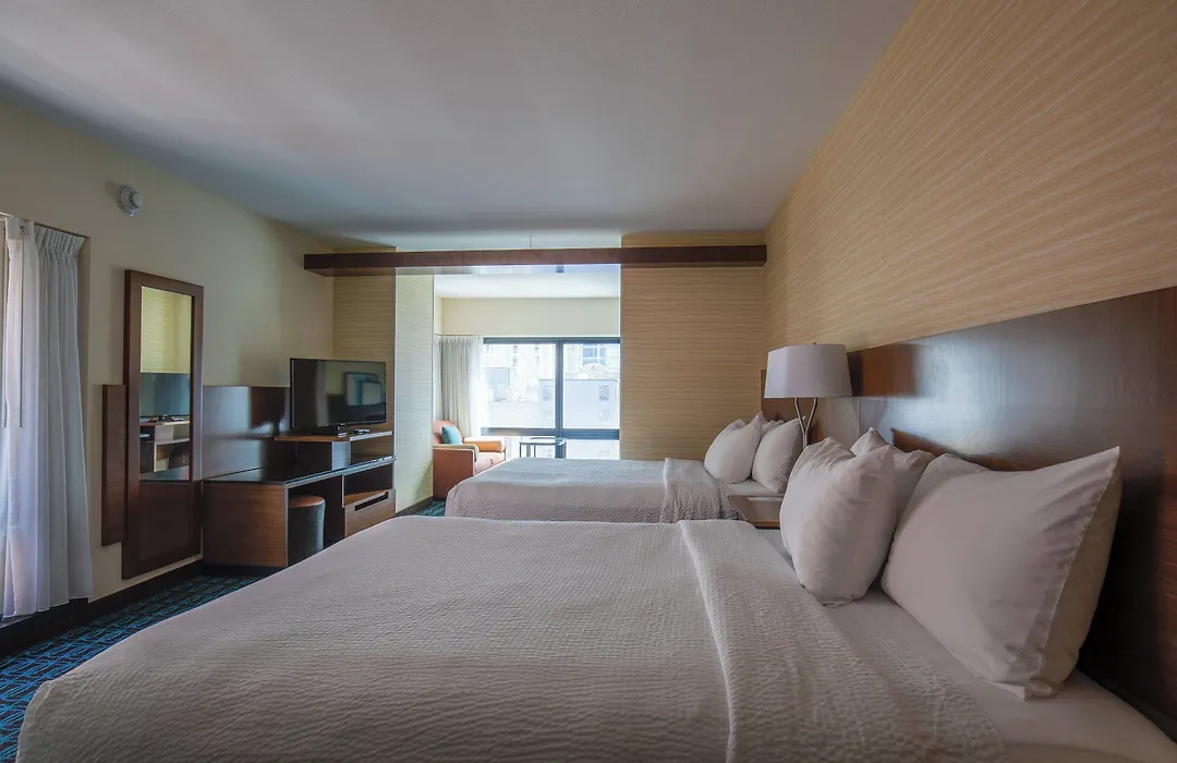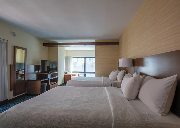All guestrooms at the Fairfield Inn are equipped with premium bedding and air conditioning, as well as a flat-screen TV. Some suites include a separate living area, microwave, and stunning city views.