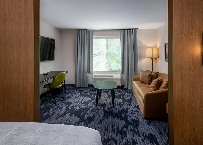 Rooms at Fairfield Inn feature air conditioning, flat-screen TVs with streaming services, and private bathrooms equipped with free toiletries and hairdryers. Selected rooms include seating areas and microwaves, while high-speed internet is complimentary throughout the hotel.