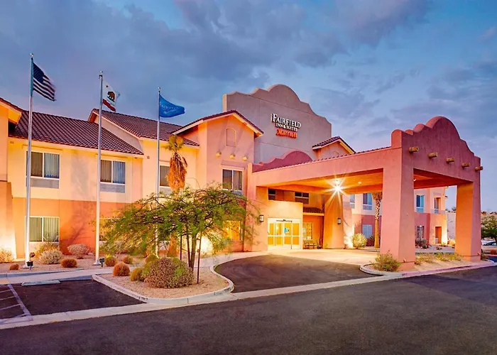 Fairfield Inn & Suites Twentynine Palms - Joshua Tree National Park is a 3-star all-suite hotel with an 8.2/10 rating. The hotel features an outdoor pool, fitness center, and a 24-hour market. Business travelers will find a meeting room and a 24-hour business center on-site.