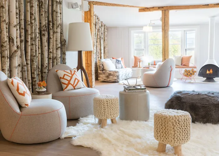 Field Guide Lodge, a charming three-star hotel in Stowe, combines modern decor with the traditional ski lodge aesthetic. Notable amenities include an on-site restaurant, free to-go breakfast, and a guest lounge with a fireplace. Rated 8.4/10 on Booking.com, it features an inviting atmosphere for families and individuals alike.