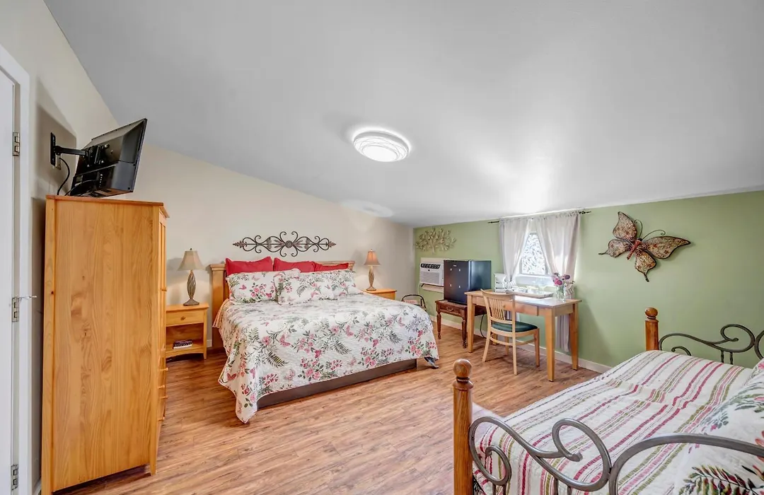With a 9.1/10 rating, Full Moon Inn showcases the charm of a working farm with diverse amenities including gardens, hiking trails, and a hot country breakfast. This 3-star Fredericksburg hotel features comfortable accommodations and is pet-friendly with specific units designated for pets.