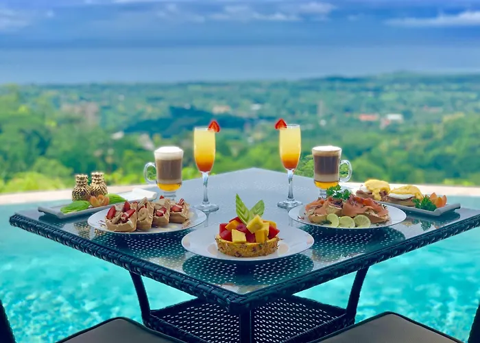 Golden Pineapple Villas-Adults Only features luxurious villas on a 14-acre private jungle oasis, equipped with private pools and breathtaking ocean views. This 5-star Uvita hotel boasts a daily a la carte breakfast and a private restaurant, The Crown, offering locally sourced dishes.