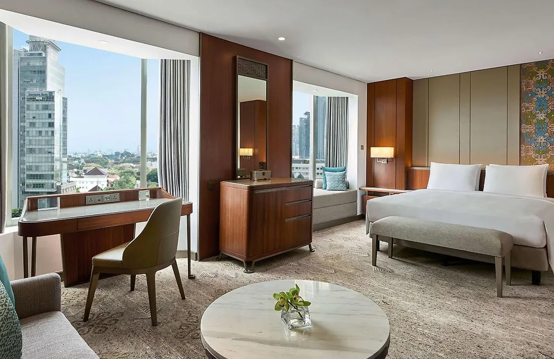 Rooms at Grand Hyatt Jakarta are elegantly decorated and equipped with flat-screen satellite TVs, minibars, and tea/coffee making facilities. Each room includes air conditioning, a personal safe, and a marble en-suite bathroom with a separate shower and bathtub. Guests have access to the Grand Club Lounge, which offers Continental breakfast and evening cocktails.