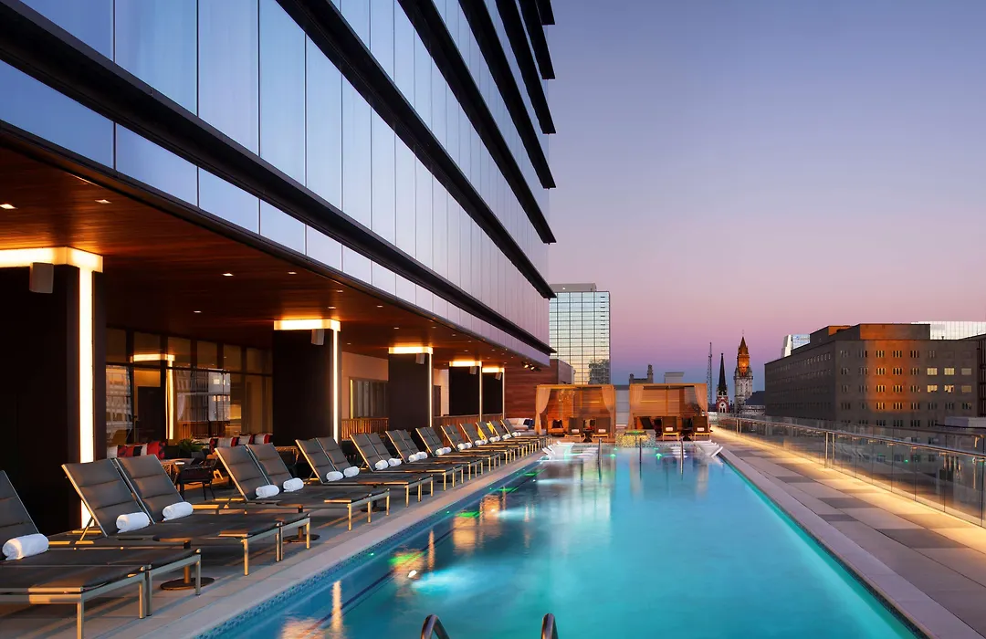 The hotel offers a fitness center and an outdoor swimming pool, as well as access to Nashville Yards park for outdoor activities. A full-service spa provides treatments to enhance guest well-being.