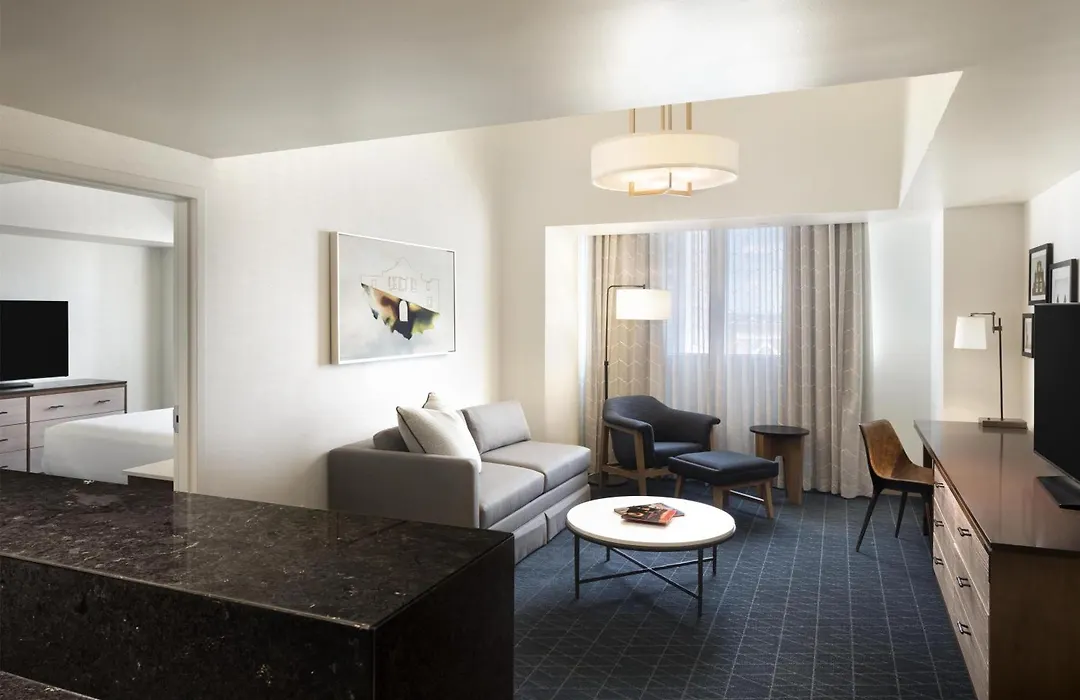 Dining options include Bar Rojo, an energetic lobby-level bar serving specialty cocktails and small plates, in addition to Ruth's Chris Steak House, which is open for breakfast, lunch, and dinner. For quick snacks and beverages, Perks Coffee & More is also available.