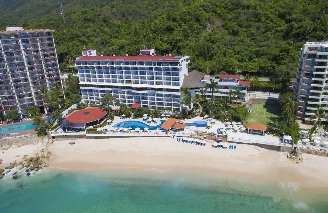 The hotel's accommodations include 342 spacious rooms, some offering panoramic views of Banderas Bay. Each room is equipped with a minibar, air conditioning, flat-screen TVs, and private balconies.