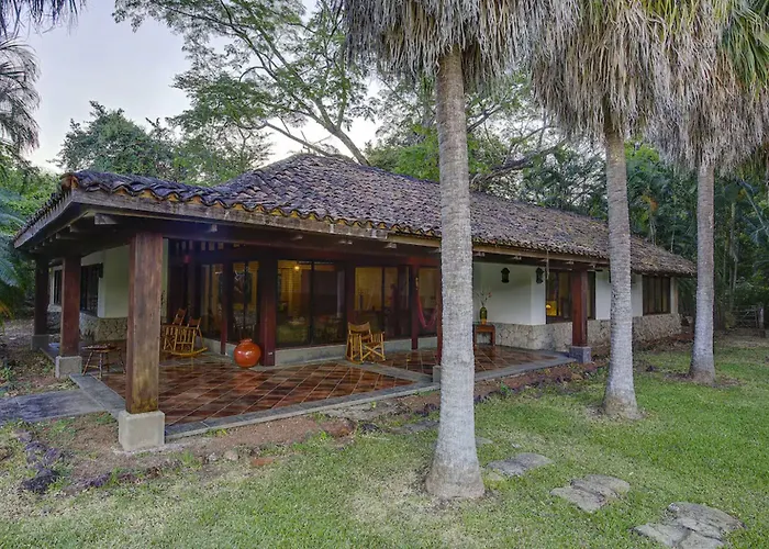 Hacienda La Pacifica Eco-Lodge, a 3-star Canas hotel rated 8.6/10 on Booking.com, offers an outdoor swimming pool, spa services, and a rustic dining environment. The property features comfortable accommodations, including rooms with garden views and a variety of dining options.