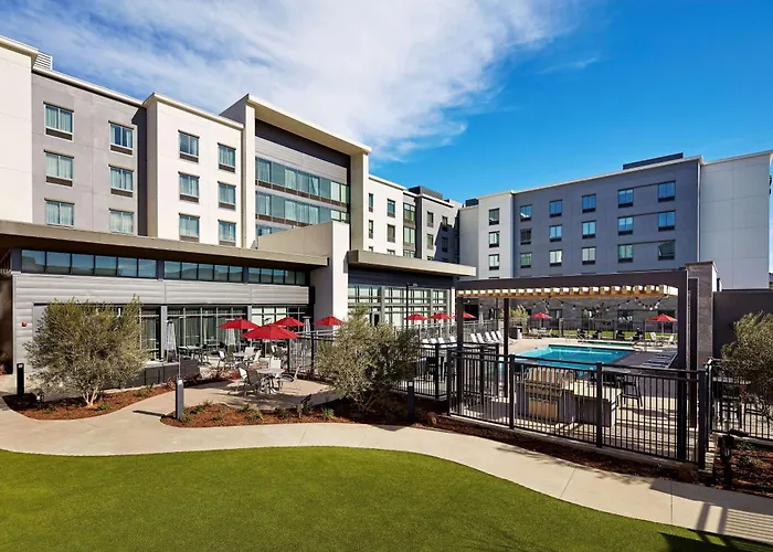 The hotel serves a free breakfast buffet that offers a mix of Continental and American options. Nearby dining includes Flame Broiler and Jersey Mike's Subs, both within 0.3 miles from the property.