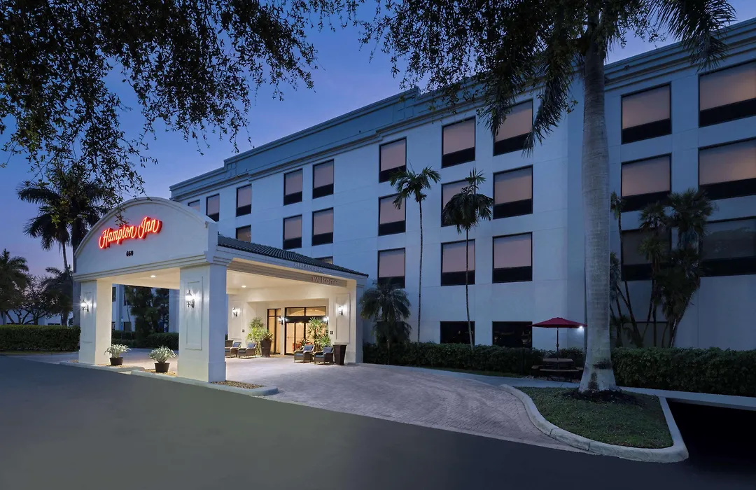 Hampton Inn Deerfield Beach is pet-friendly, allowing pets up to 75 lbs. The nearest major transportation hub is Fort Lauderdale-Hollywood International Airport, located approximately 12 miles away.
