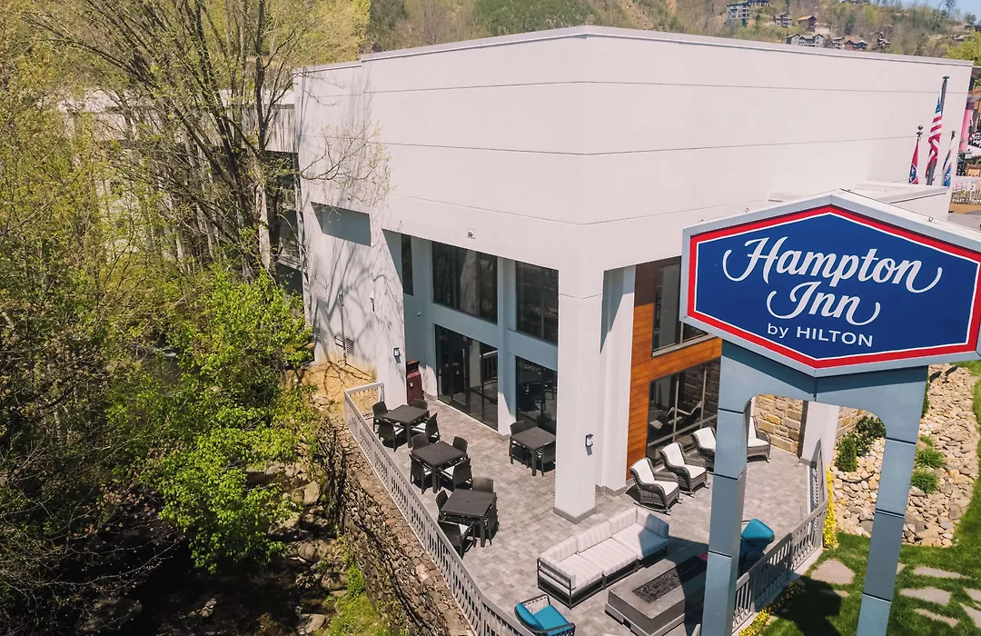 Hampton Inn Gatlinburg is a 3-star hotel rated 8.8/10 on Booking.com, featuring an outdoor pool and a fitness center. It offers convenient access to popular attractions including Ripley's Aquarium of the Smokies and Great Smoky Mountains National Park.