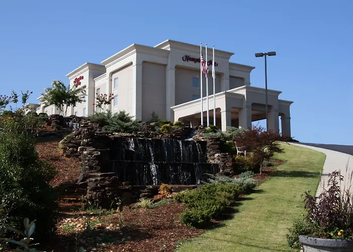 Hampton Inn Guntersville features a heated outdoor pool and free hot breakfast, rated 8.0/10 on Booking.com. This 3-star hotel offers pet-friendly accommodations and is designed to blend in with its scenic lake surroundings.