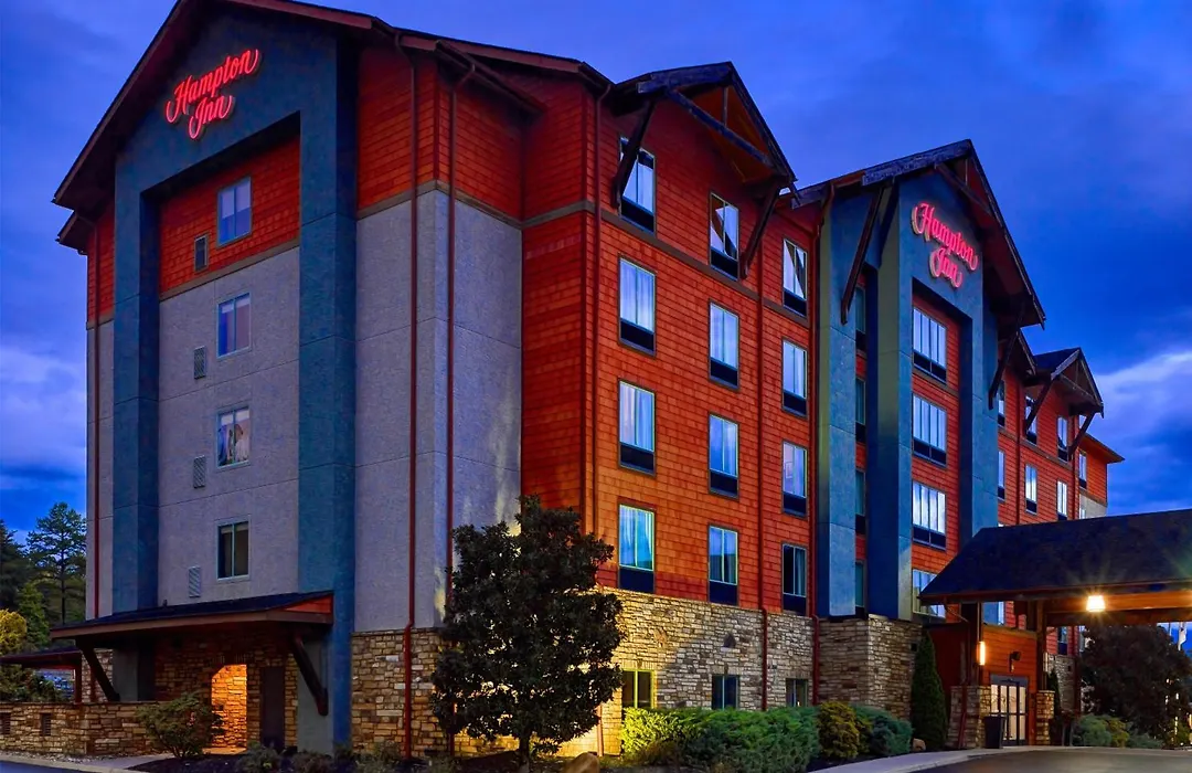 Hampton Inn Pigeon Forge is a 3-star hotel offering an indoor heated pool, outdoor pool, and a fitness center. Guests enjoy amenities like free continental breakfast and a porch with rocking chairs. This Pigeon Forge hotel is conveniently located near major attractions.