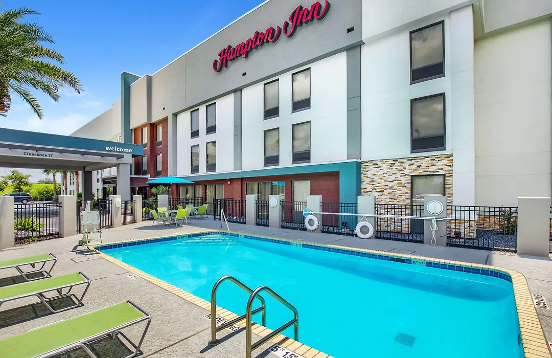 Hampton Inn Slidell is a 3-star hotel with a rating of 8.6/10 on Booking.com, offering comfort and convenience between New Orleans and Bay St. Louis. Amenities include a complimentary hot breakfast, outdoor pool, and fitness center.