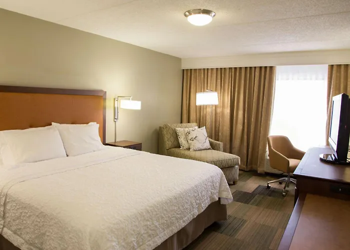 Hampton Inn & Suites Albany-Downtown features modern accommodations with a 3-star rating and a Booking.com score of 7.9/10. Guests have access to on-site dining at Yono's and dp, an American Brasserie, as well as amenities like complimentary deluxe hot breakfast and a fitness center.