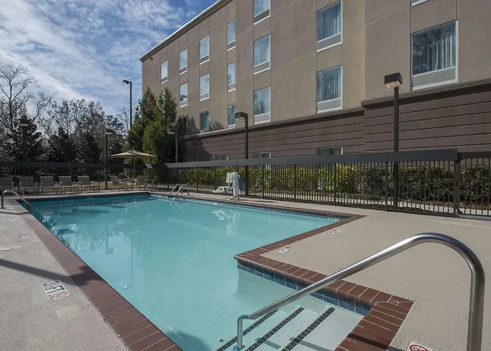 Hampton Inn & Suites Atlanta Airport West Camp Creek Pkwy is a 3-star hotel rated 8.5/10 by Booking.com, featuring an outdoor swimming pool and fitness center. This College Park hotel offers amenities such as complimentary breakfast and a business center, catering to both leisure and business travelers.